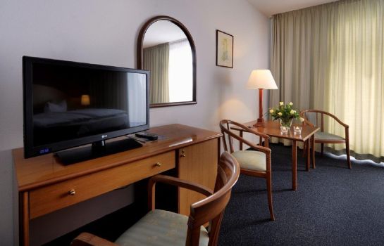 Details zum Angebot bei Beschreibung:Dieses moderne Hotel ist von einer großzügigen Parkanlage umgeben und verspricht einen ruhigen Aufenthalt. Genießen Sie eine erholsame Nacht in Ihrem stilvoll eingerichteten Zimmer und beginnen Sie den Tag mit einem reichhaltigen Frühstück. Nachmittags und abends werden Sie im Restaurant mit leckeren Kuchen und exquisiten Menus verwöhnt. Es erwarten Sie 101 Standardzimmer, Standard-Plus-Zimmer, Komfort-Zimmer und Komfort-Plus-Zimmer sowie Suiten. Alle Zimmer sind ausgestattet mit Telefon, Minibar, Fernseher, Pay-TV, Bad und größtenteils mit Balkon, wobei die Standardzimmer über keinen Balkon verfügen.